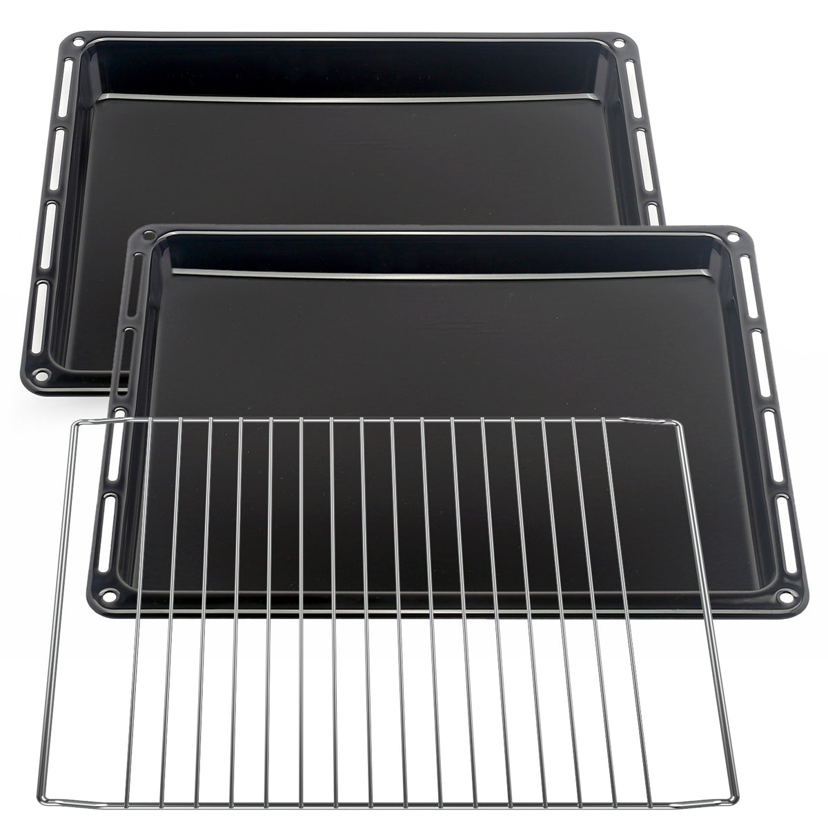 UNIQ DEALZ 445 x 375 x 30 mm und 40mm 3er Set mit 2 Backbleche 2 Tiefe emailliert und 1 Backrost 445x340x25 mm passend für Bauknecht Whirlpool Ignis