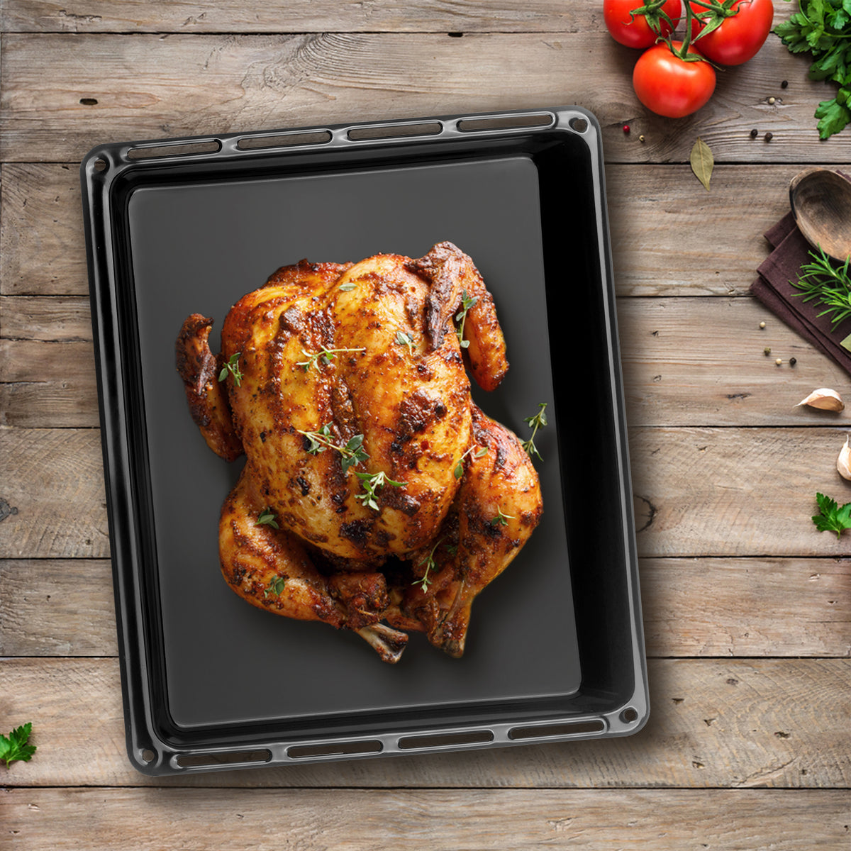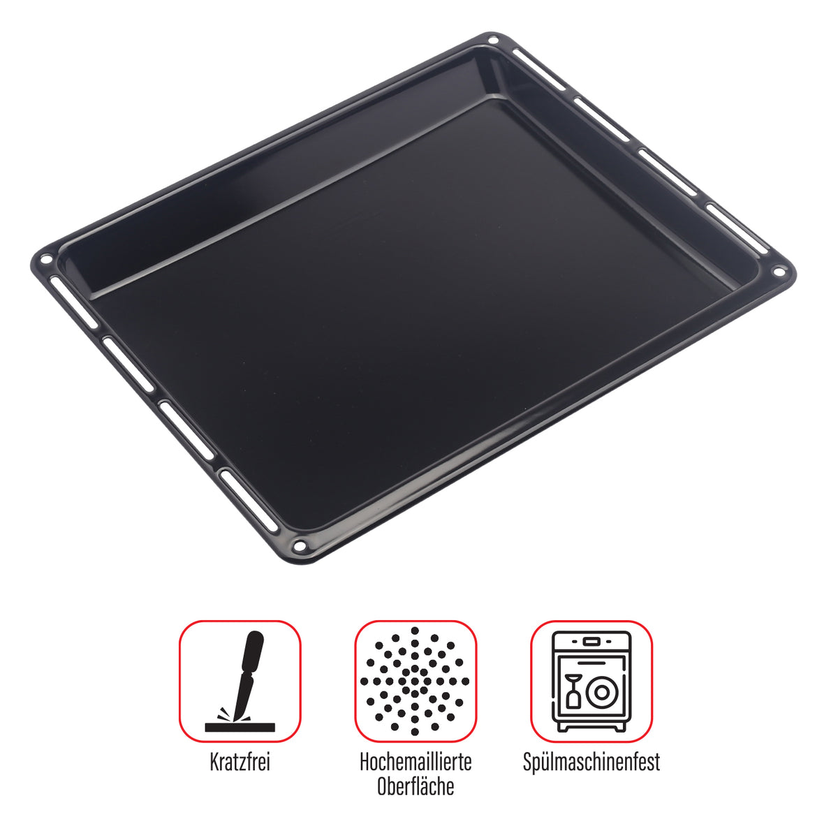 • 🍽️ EMAILLIERTE FETTPFANNE UND BACKBLECH geeignet für alle möglichen Arten von Backwaren z.B. Kuchen, Keks, Muffin, Plätzchen, Brot und Brötchen, Hefezopf und Stollen aber auch braten von Fleischsorten. Hohe Seitenbereiche sind ideal, um einen Braten zuzubereiten, da so der austretende Bratensaft nicht überlaufen kann.
